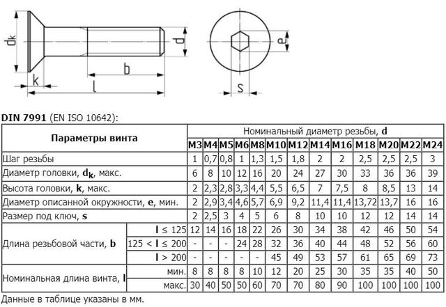 Гвинт з потайною головкою під внутрішній шестигранник INBUS DIN7991